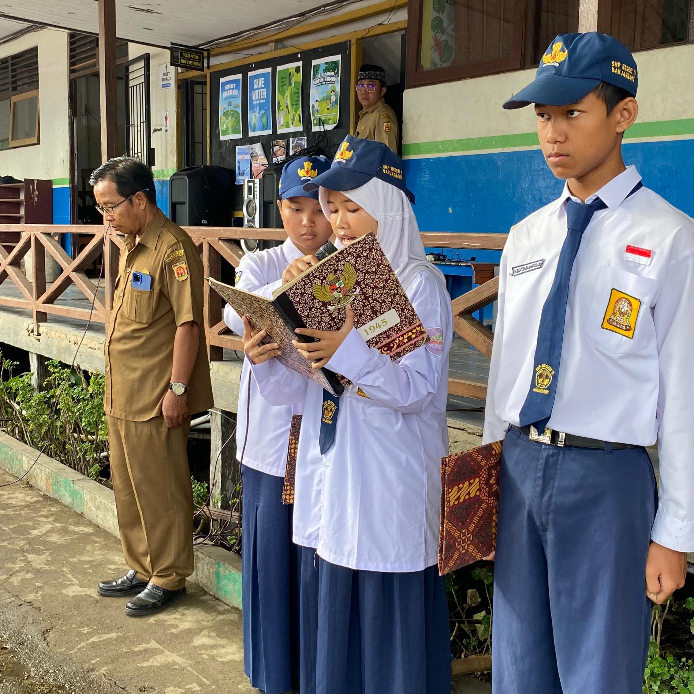 “Bapak mengucapkan banyak-banyak terimakasih kepada seluruh Tenaga Pendidik dan Kependidikan, serta Seluruh siswa/siswi sangat antusias memberikan sambutan yang sangat meriah. Juga pelaksanaan Upacara yang sangat tertib.” amanat Bapak Sirajoni (Pj. Sekda Kota Banjarbaru), sebagai pembina upacara Senin, 11 Agustus 2025